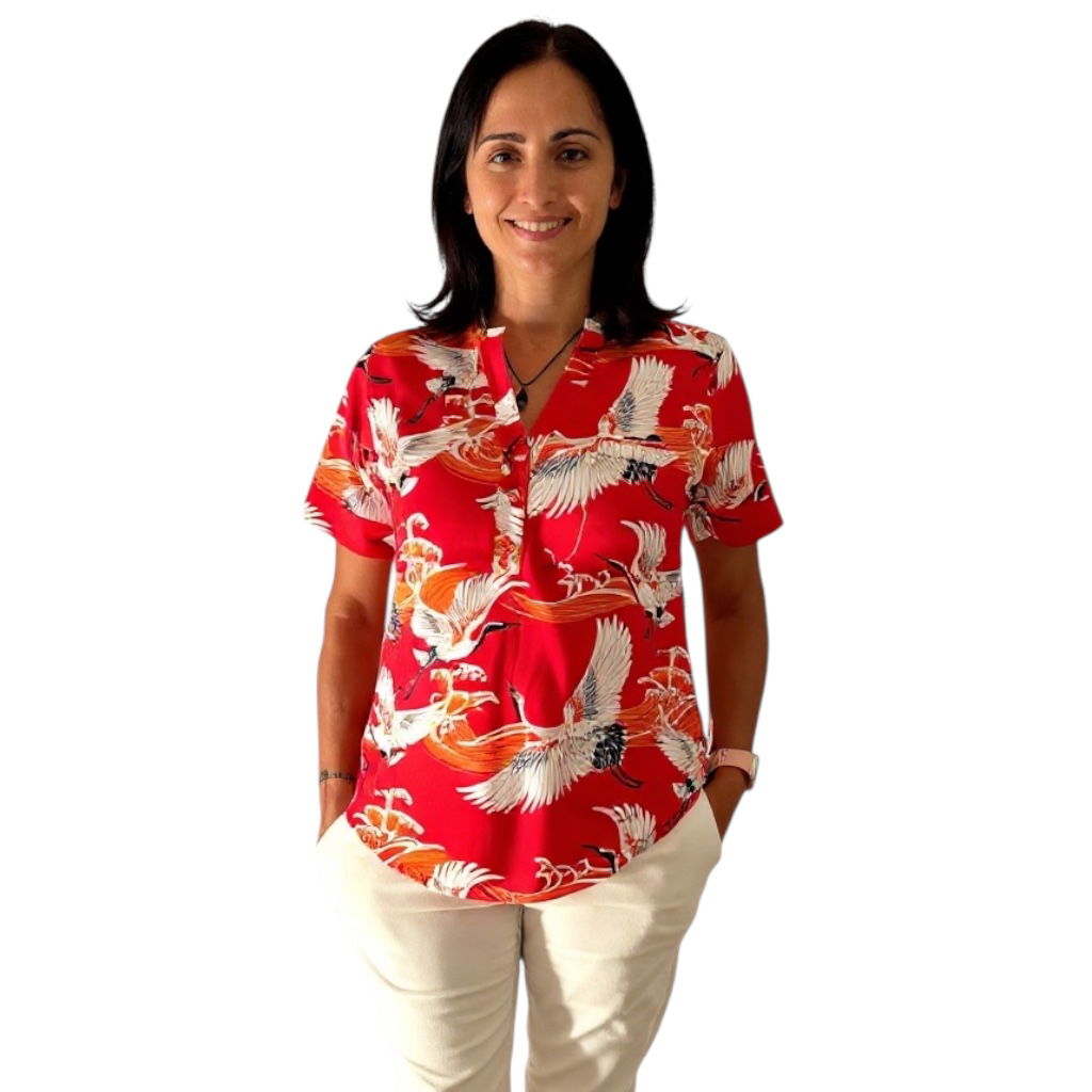Tela Spandex ( 97% Algodón, 3% elastano). Chaqueta de Spandex, cuello redondo con tres/cuatro botones, con dos bolsillos laterales y uno superior delantero. Espalda con tiras ajustables.