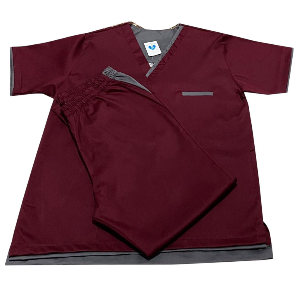 Pantalón de spandex, recto, bordo, elástico en cintura y tres bolsillos (dos laterales y uno atrás).