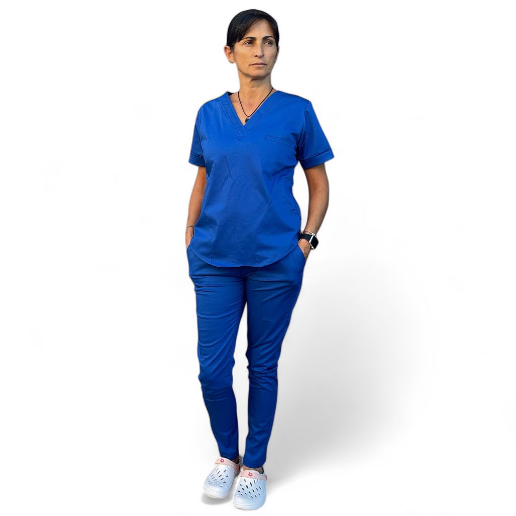 Chaqueta de Tela Spandex , cuello escote en V, con 2 bolsillos laterales y uno ojal. Espalda con tiras ajustables.