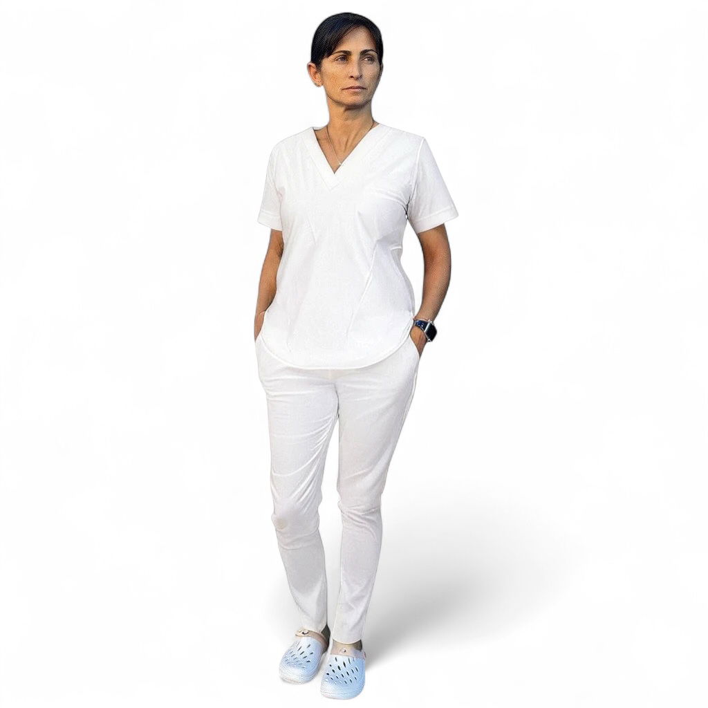 Chaqueta de Tela Spandex , cuello escote en V, con 2 bolsillos laterales y uno ojal. Espalda con tiras ajustables.