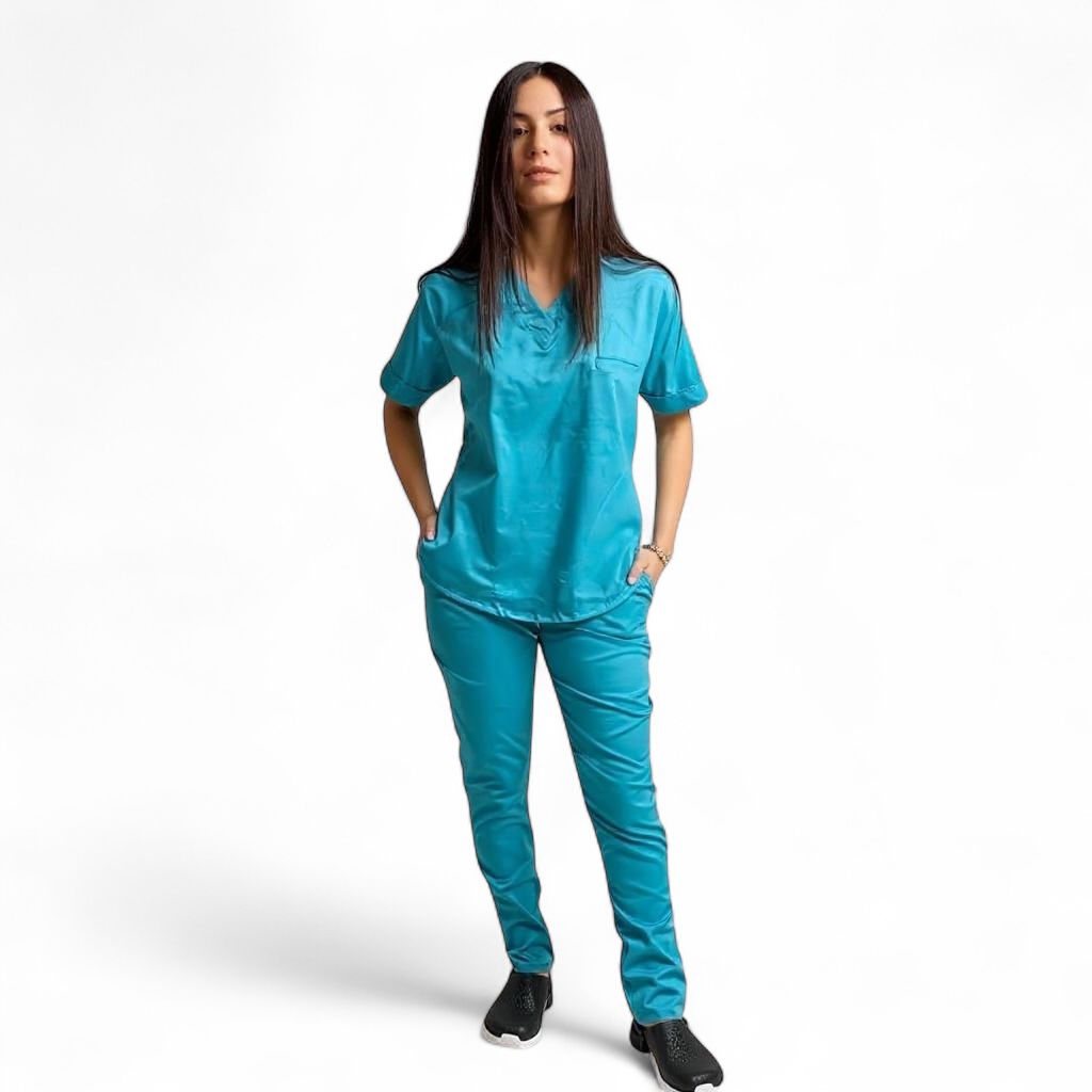 Chaqueta de Tela Spandex , cuello escote en V, con 2 bolsillos laterales y uno ojal. Espalda con tiras ajustables.