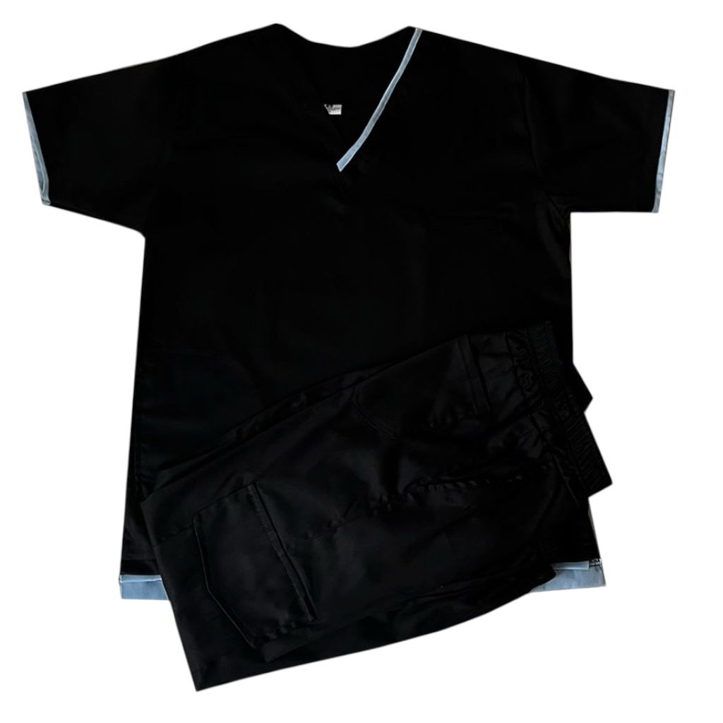 Chaqueta tela spandex escote en V, con 3 bolsillos, (2 bolsillos laterales y 1 ojal).