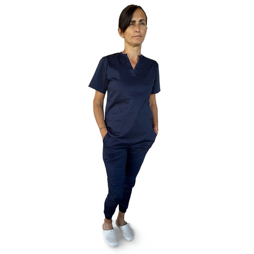 Chaqueta de Spandex, o,  cuello en V , mangas princesa , con dos bolsillos laterales y uno superior delantero aplicado. Espalda con tiras ajustables.