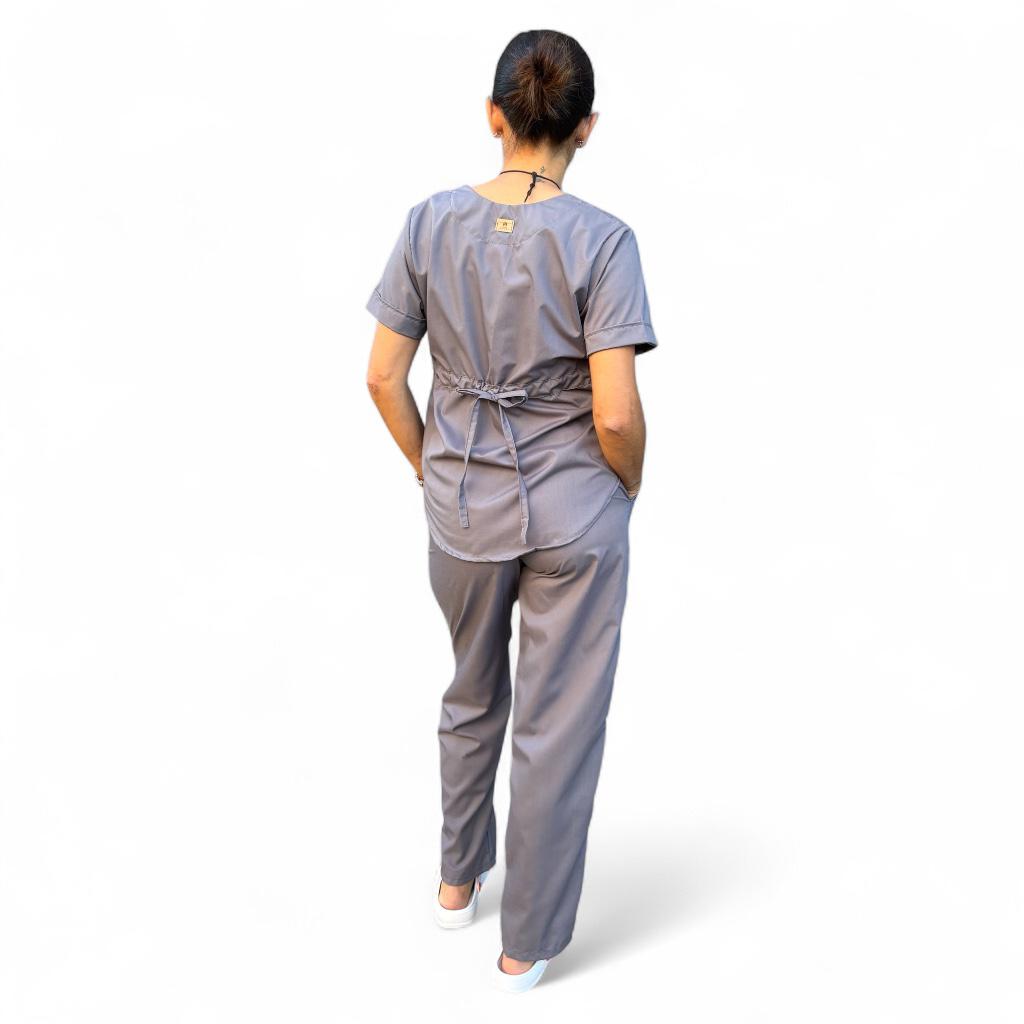 Chaqueta de Tela Batista , cuello escote en V, con 2 bolsillos laterales y un Bolsillo de frente aplicado. Espalda con tiras ajustables.