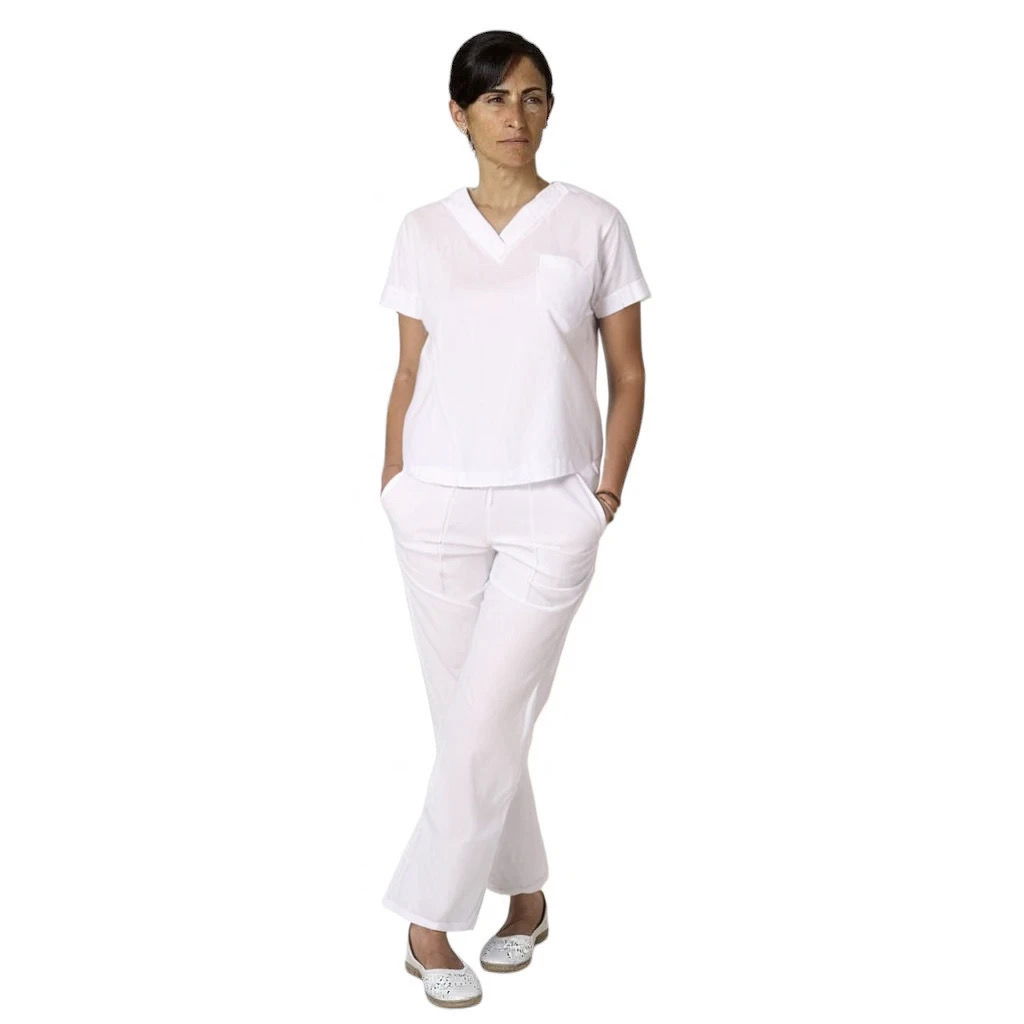 Chaqueta de Tela acrocel,, cuello escote en V, con 2 bolsillos laterales y un Bolsillo de frente aplicado. Espalda con tiras ajustables.