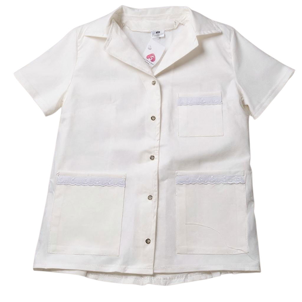 Chaqueta spandex , con 5 botones frontales, dos bolsillos laterales y uno superior delantero. Con vistas en los bolsillos.