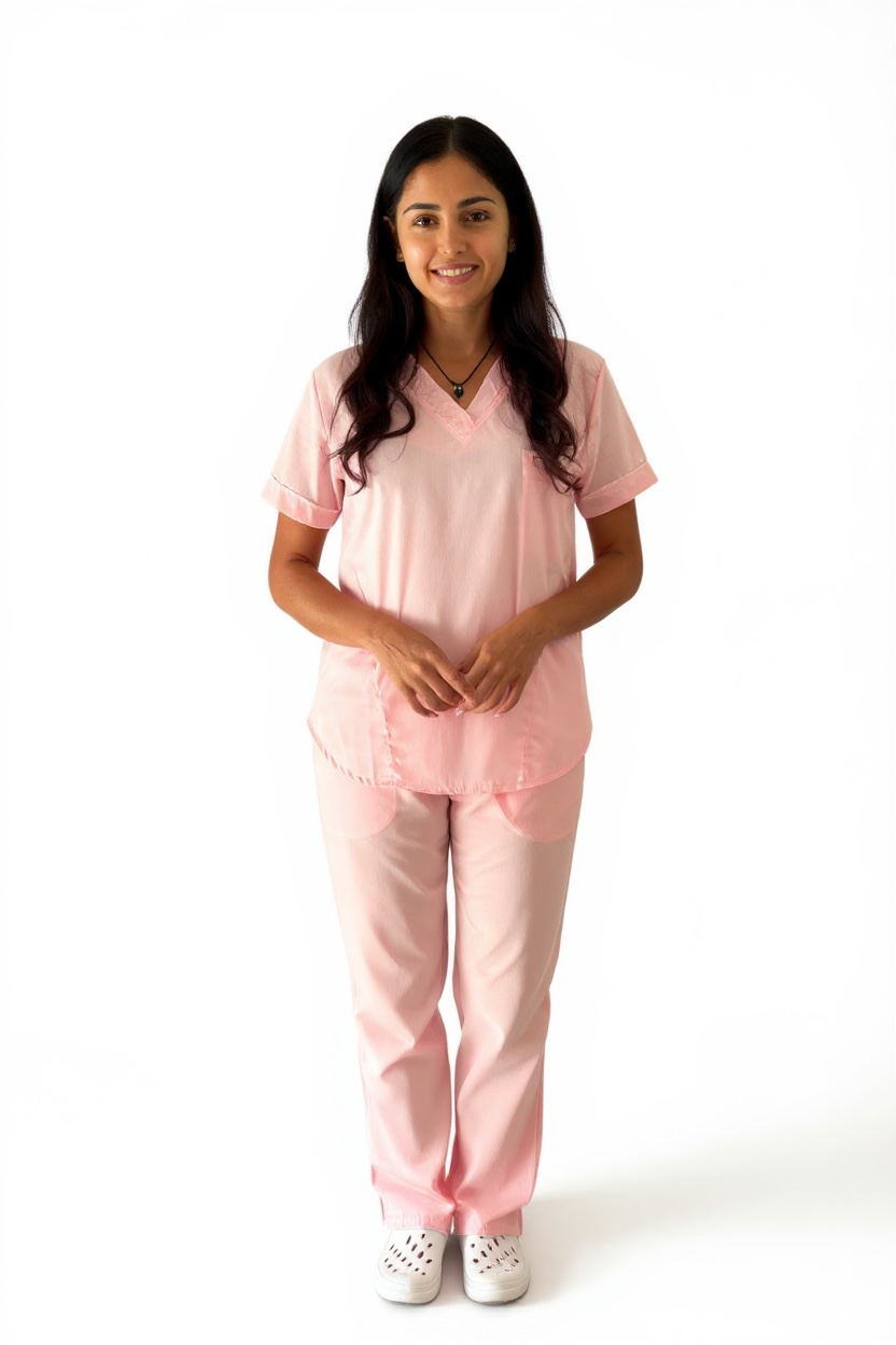 Chaqueta de Tela Batista , cuello escote en V, con 2 bolsillos laterales y un Bolsillo de frente aplicado. Espalda con tiras ajustables.