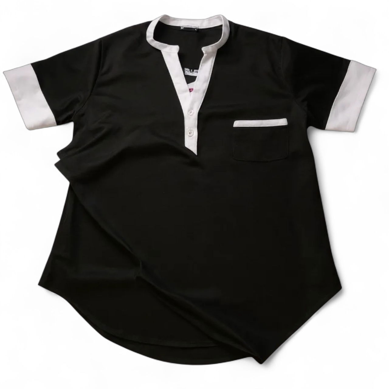 Tela Spandex ( 97% Algodón, 3% elastano). Chaqueta de Spandex, cuello redondo con tres/cuatro botones, con dos bolsillos laterales y uno superior delantero. Espalda con tiras ajustables. Pantalón de Spandex, Chupin, con elástico en cintura trasera y bolsillos laterales.