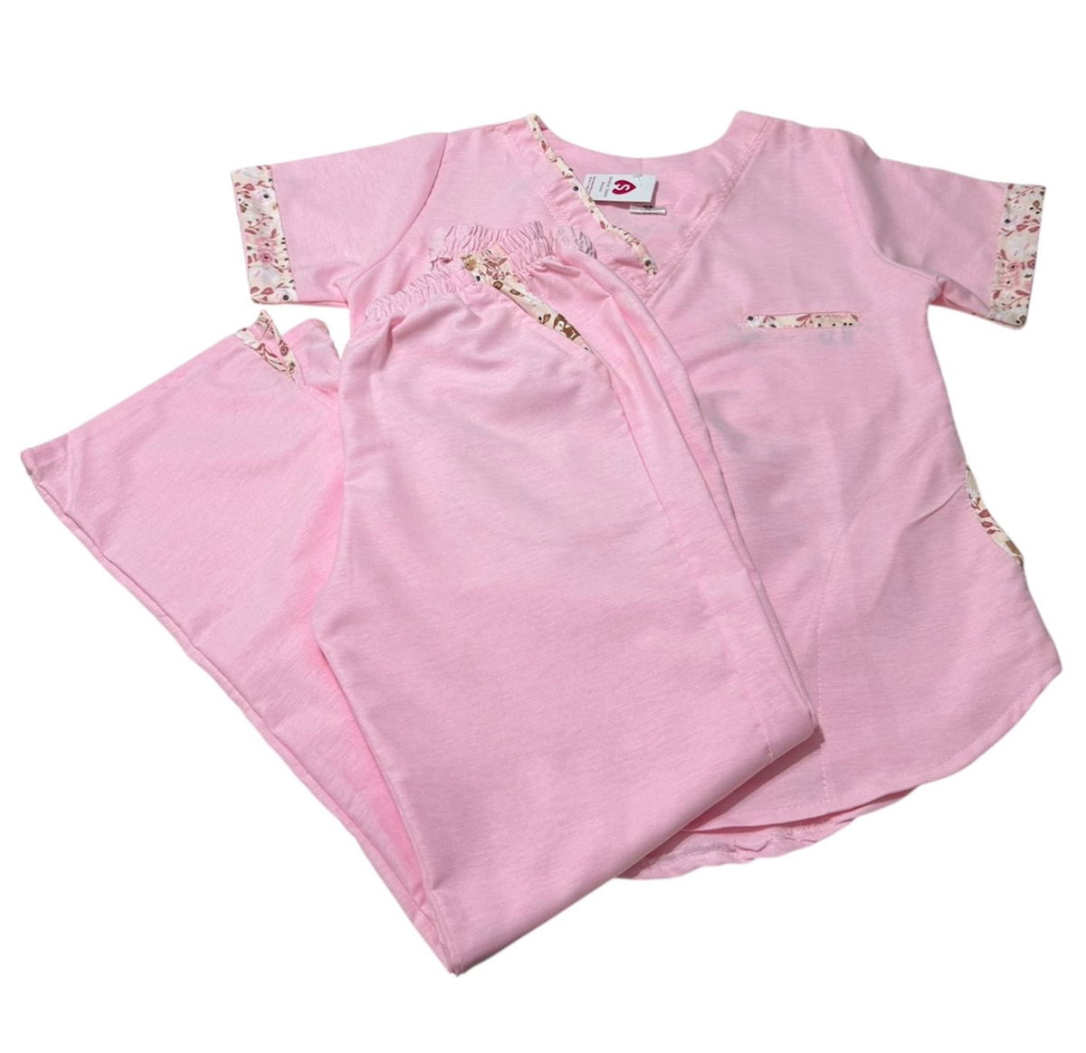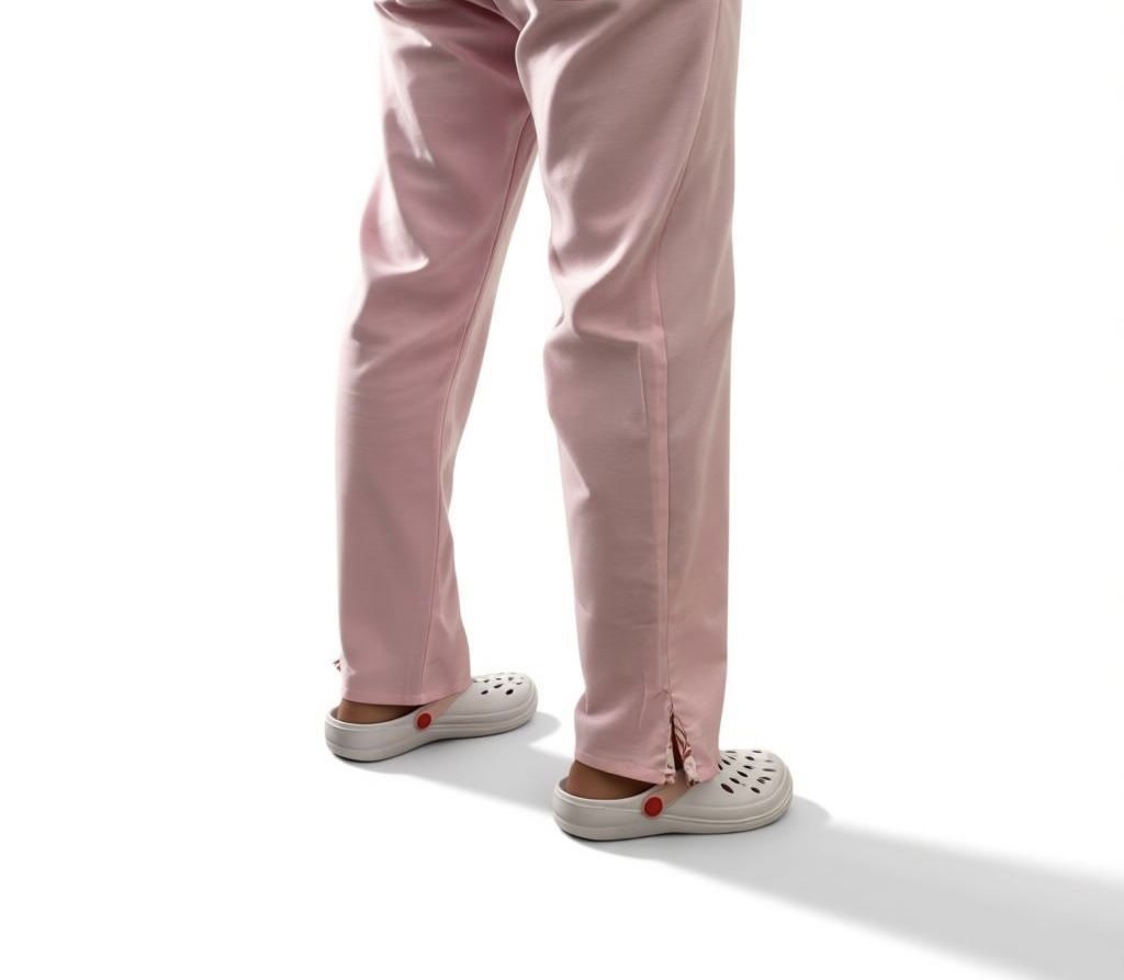 Pantalón de Tela Oxford , recto elástico en toda la cintura y bolsillos laterales y tajo en la parte inferior .