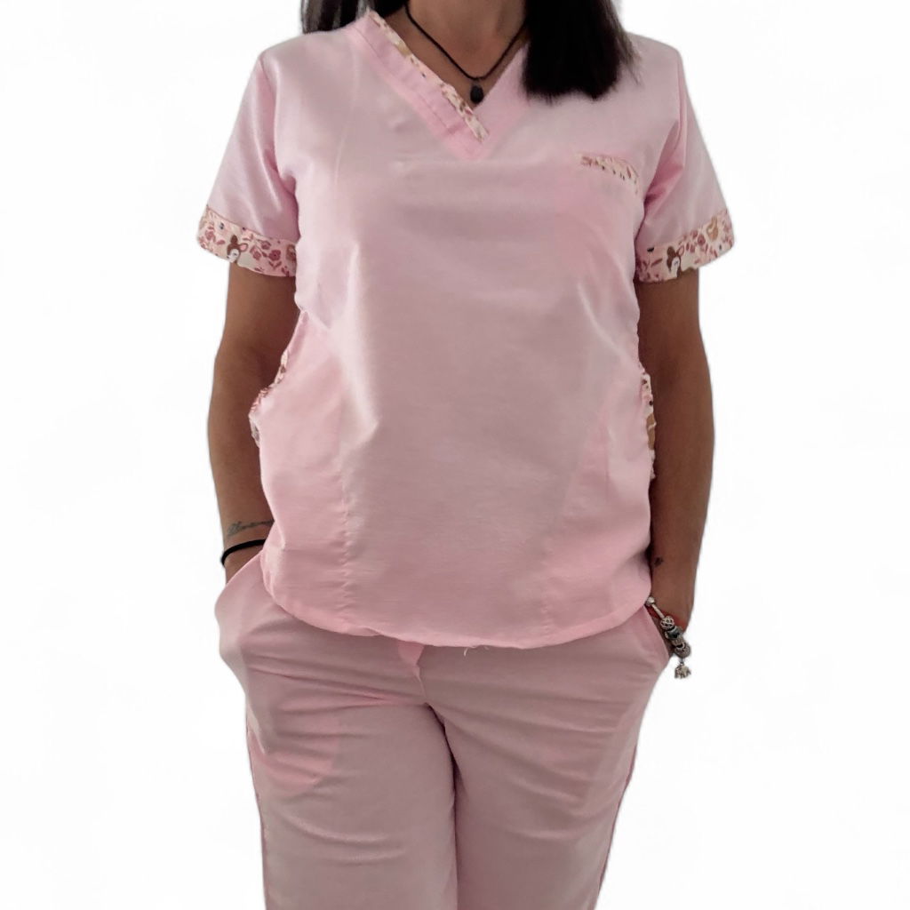 Chaqueta de Tela Oxford , cuello escote en V, con 2 bolsillos laterales y un Bolsillo de frente aplicado. Espalda con tiras ajustables.