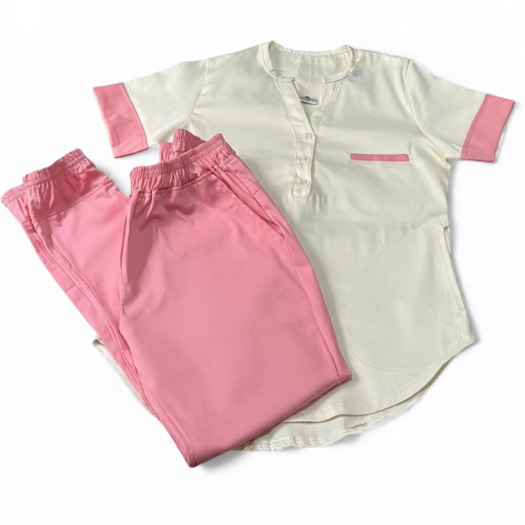 Chaqueta de Spandex, , cuello redondo con tres/cuatro botones, con dos bolsillos laterales y uno superior delantero aplicado. Espalda con tiras ajustables.